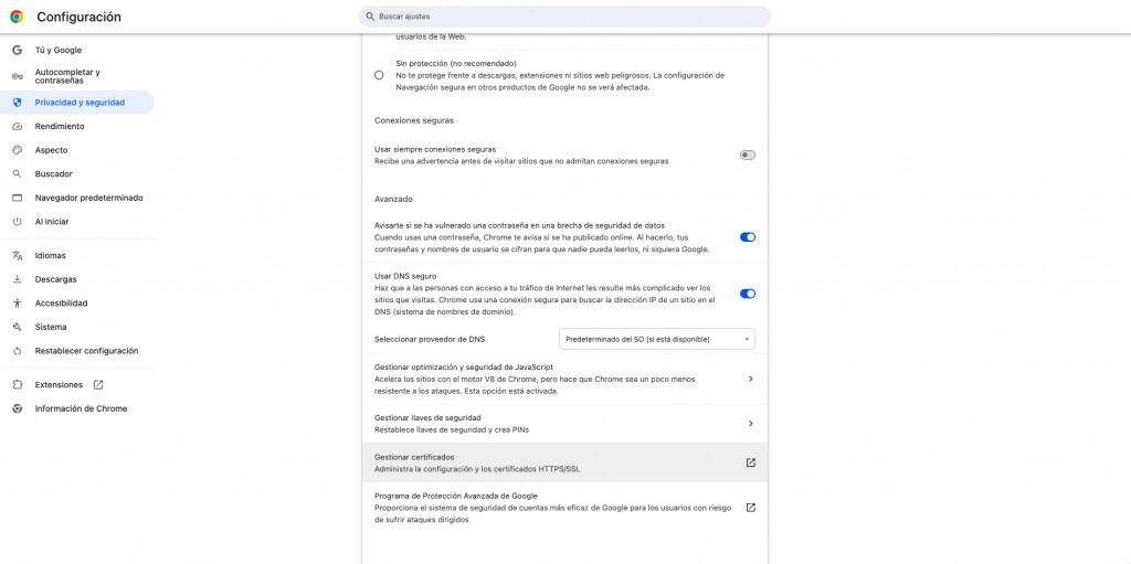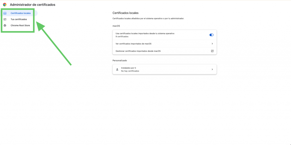 Google Chrome no guarda los certificados «dentro» del programa como tal (a diferencia de Firefox), sino que actúa como una ventana al almacén de certificados de tu sistema operativo (Windows o macOS). Saber acceder a ellos te permite:
